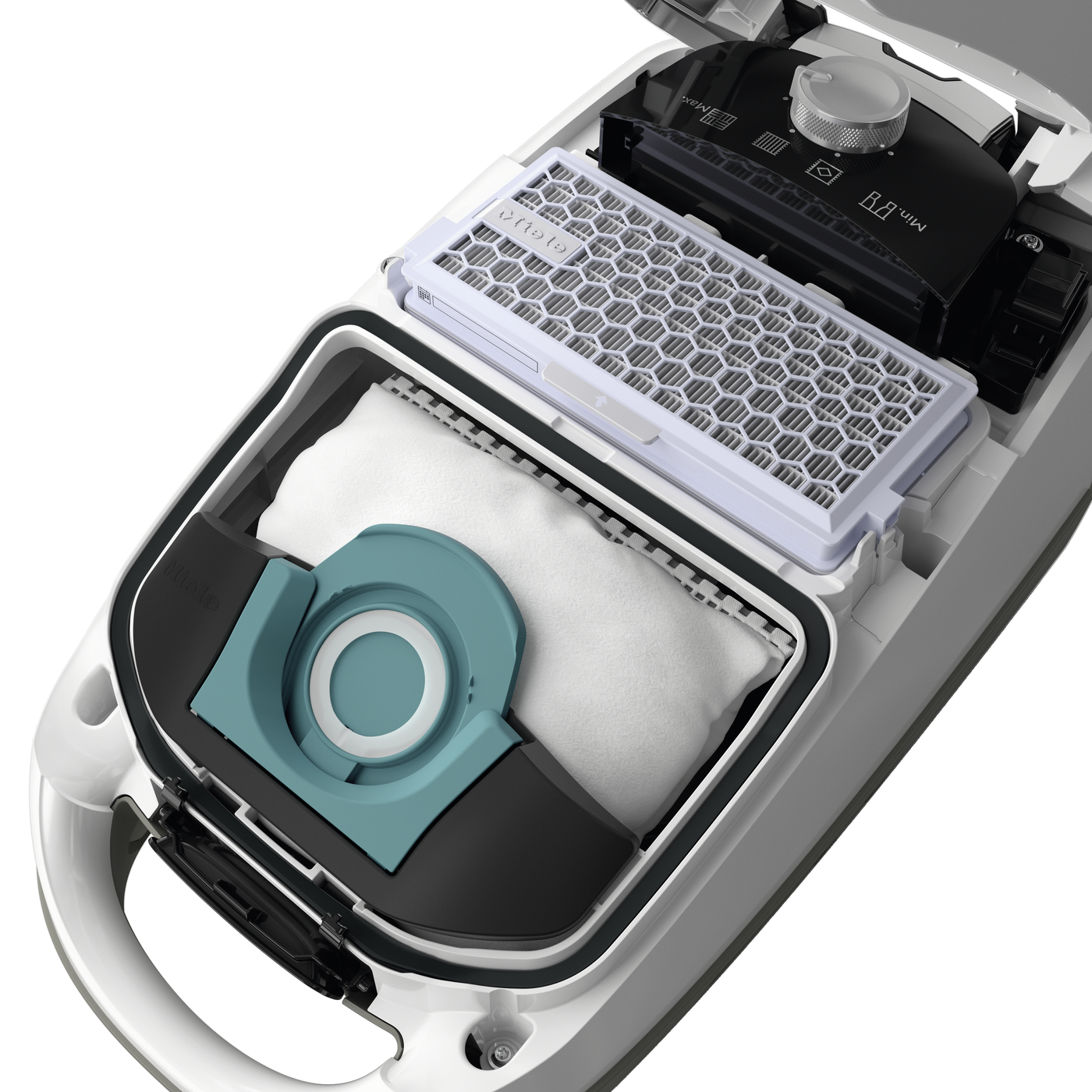 また、ミーレ独自のエアクリーンシステムによる高い空気ろ過性能に加え、ゴミ捨て時に自動で閉じるフタを備えることで、ダストバッグ交換時にホコリやチリの舞い上がりを抑制する機能も搭載。部屋の空気よりもきれいな排気を実現し、空間全体を清潔に保ってくれます。