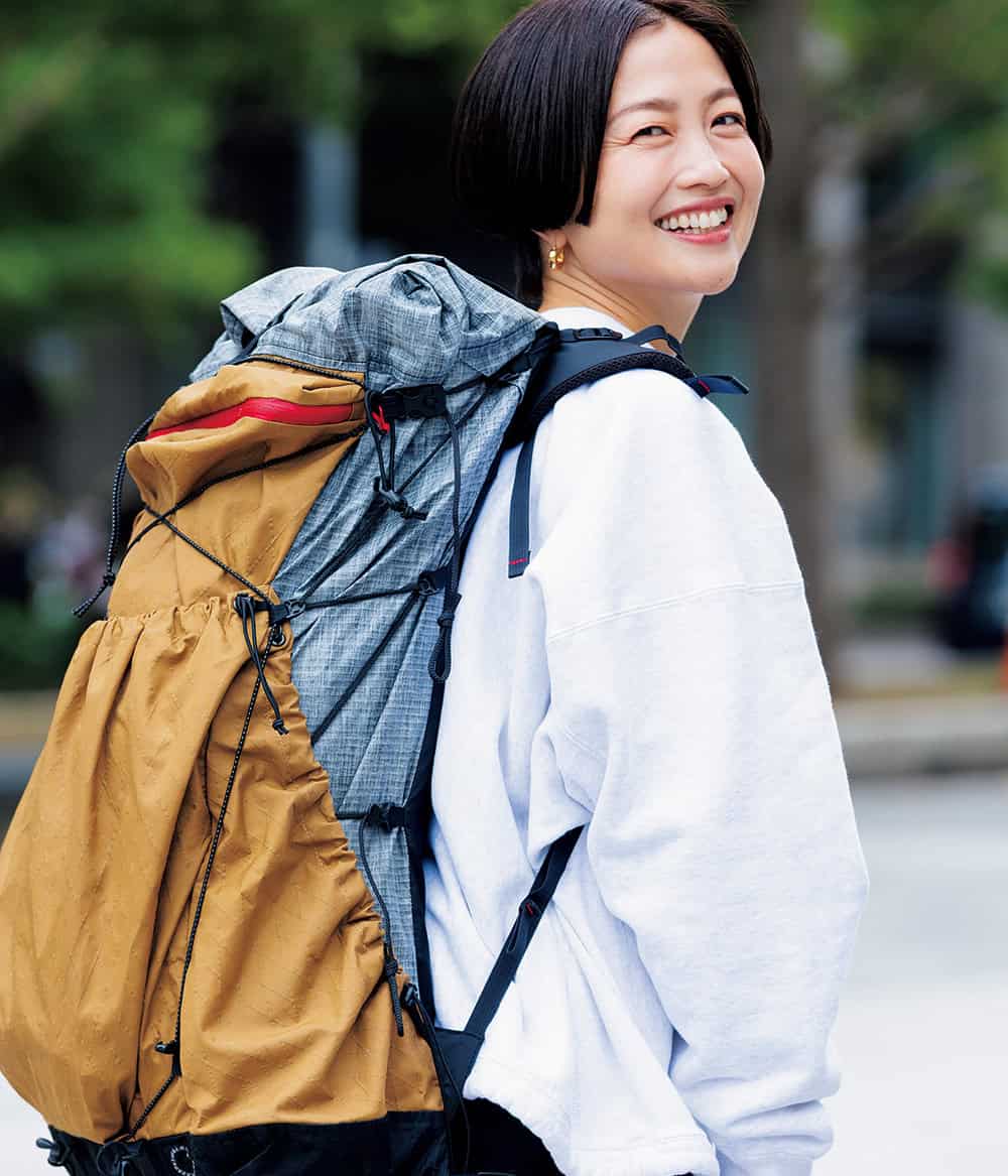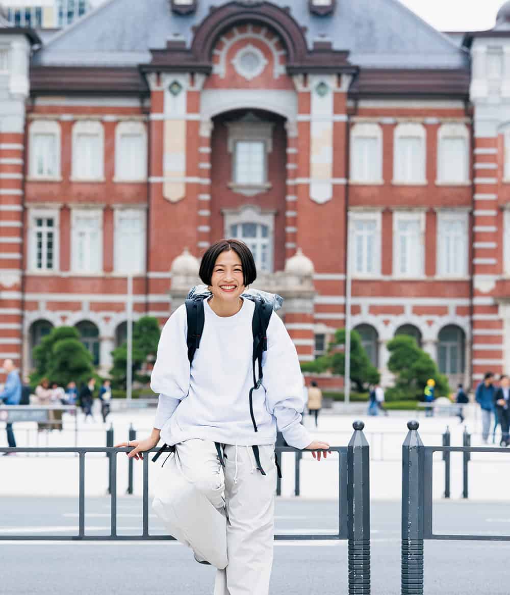 動きやすい格好にバックパックが旅スタイル。「1年後の未来に驚き続ける自分でいたい」。その生き方に旅が寄り添います。