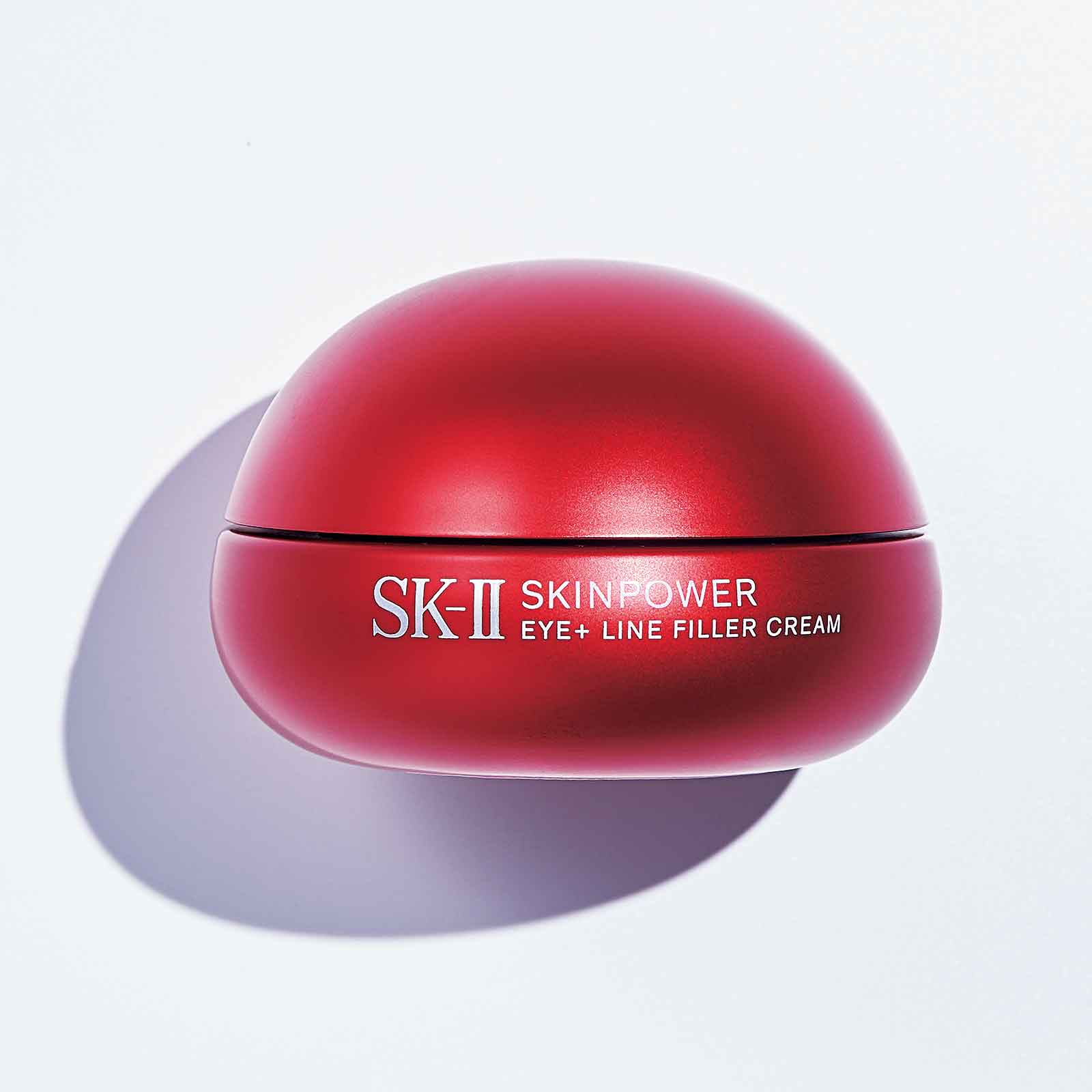 乾燥やむくみで萎んだ目元を潤いとハリでふっくらと。乾燥による顔中の小ジワケアにも。スキンパワー アイ プラス ライン フィラー クリーム 15g ¥15,400〈編集部調べ〉(SK-II)