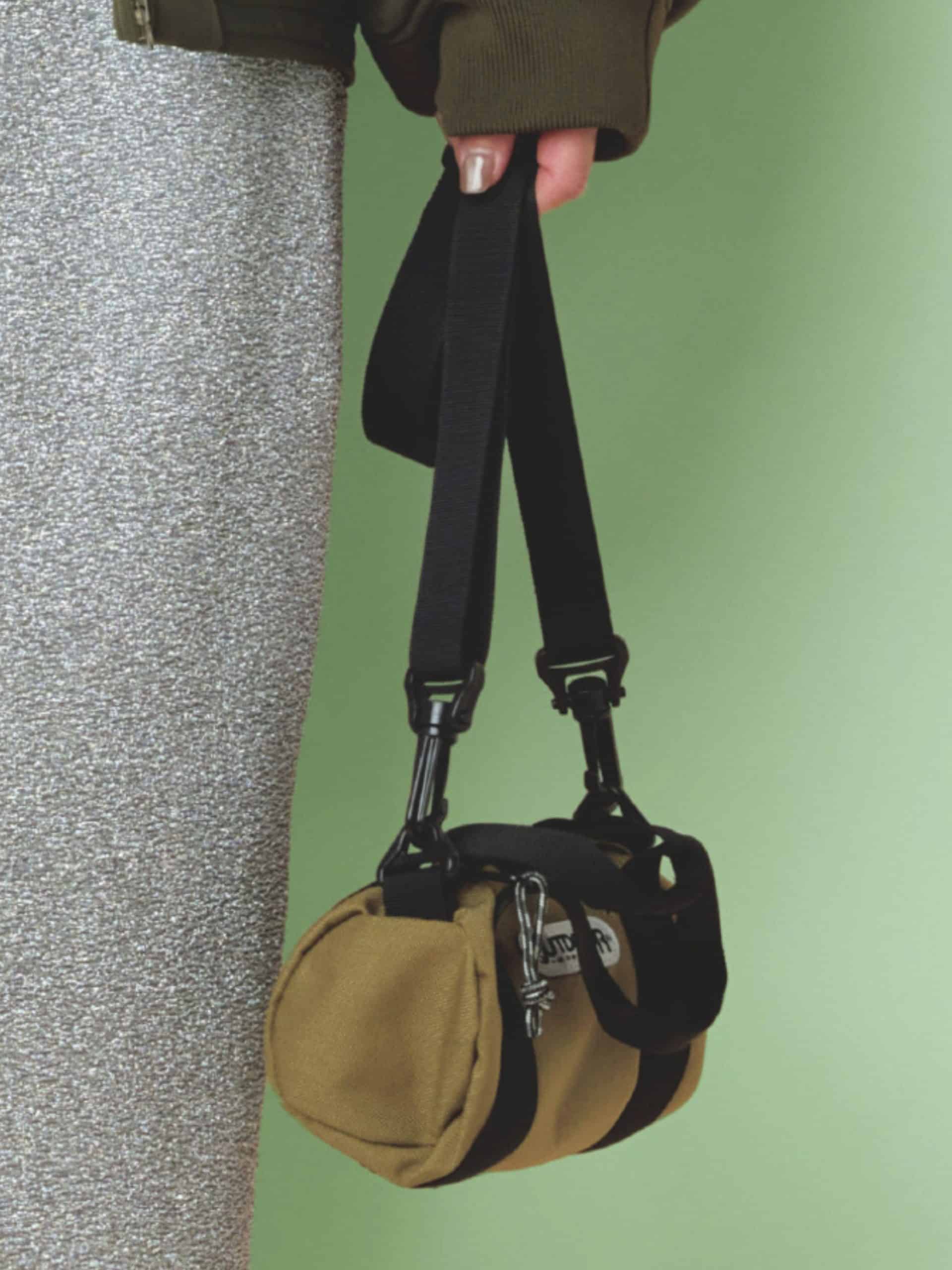 荷物の多い旅行は、中身を必要最低限のものに絞れるミニマムサイズがおすすめ。軽く収まることで、持ち運びがしやすくなり、長時間の移動でも体への負担を避けられます。汚れが目立ちにくいミリタリーカラーをチョイスして、ジャケットと統一感を。