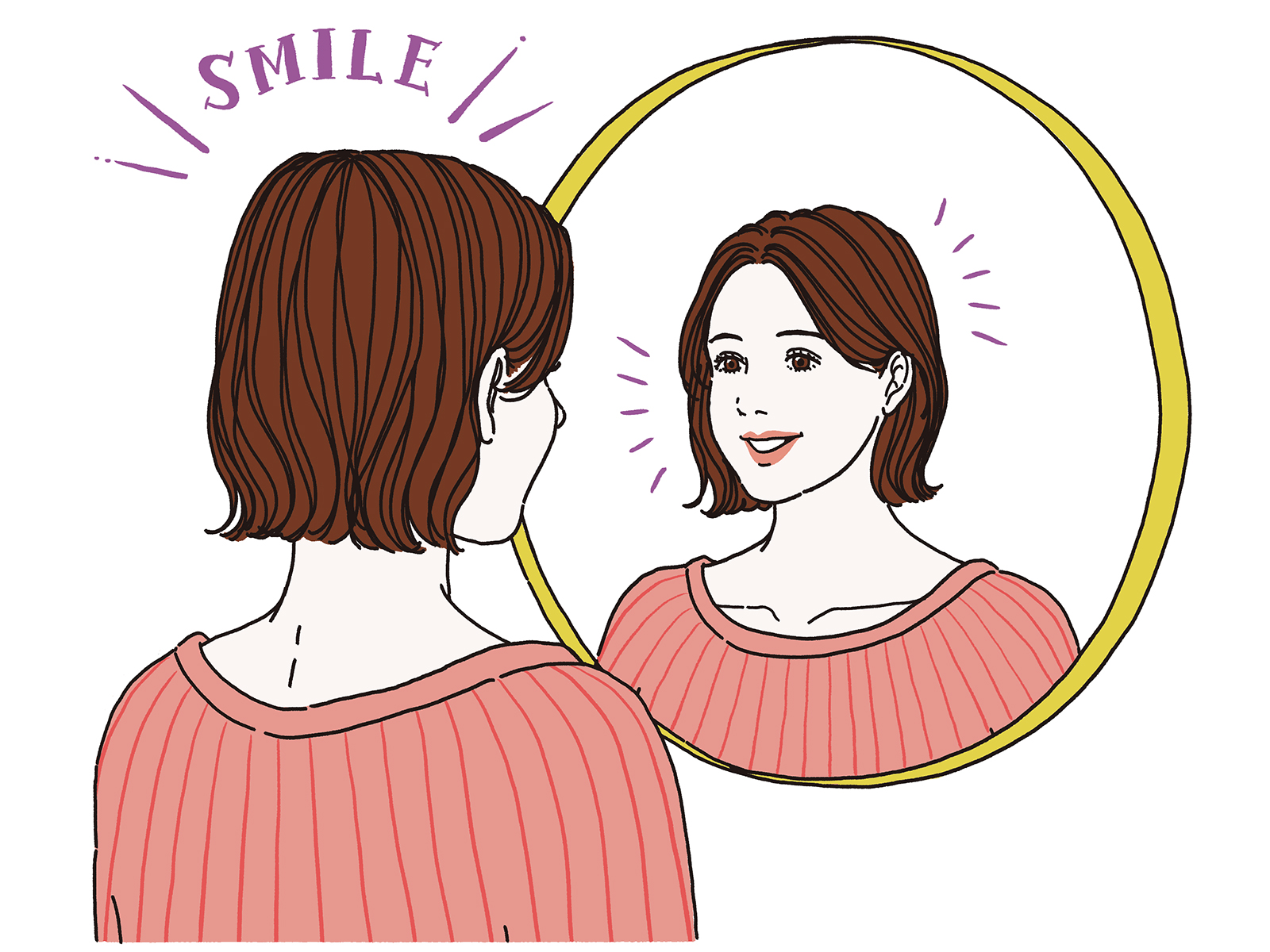 口角を上げて笑った表情を浮かべると、脳は筋肉の動きから笑顔になっていると認識して、脳からセロトニンが分泌されます。朝のメイク時や歯磨きのタイミングなどで、鏡に向かってほほえむ習慣をつけましょう。