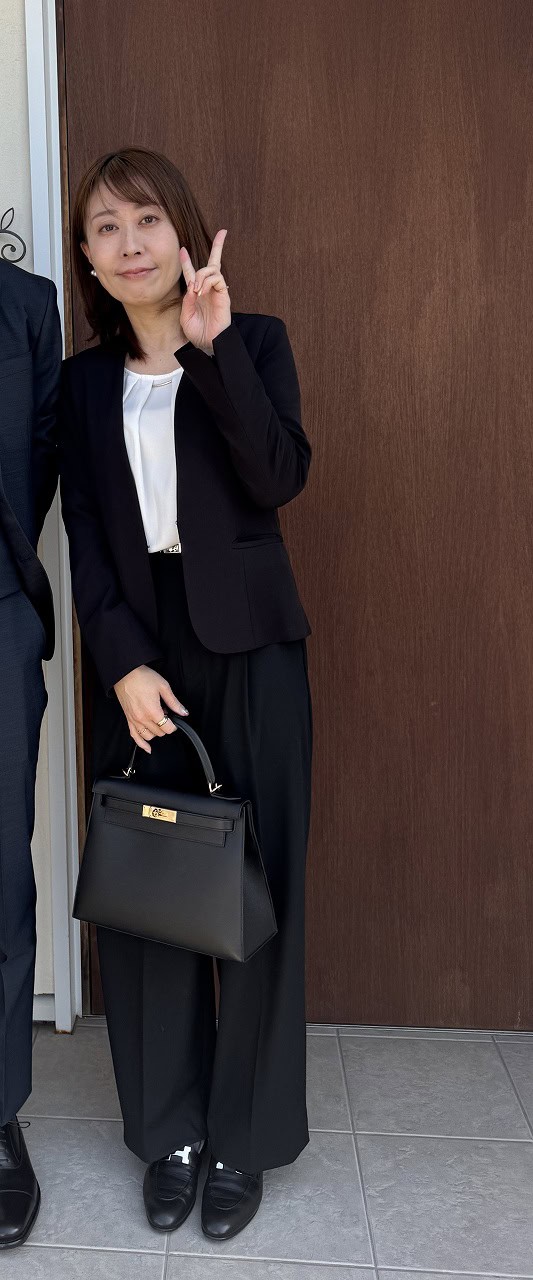 子どもたちが主役の日なので、装いは全体的にシンプルにまとめました。仕事柄スーツを着る機会が多いからこそ、卒業式では少し雰囲気を変え、母らしさをほんのり感じさせつつ、出しすぎないモードなワンピーススタイルに。控えめながらも自分らしさを大切にしたコーディネートです。