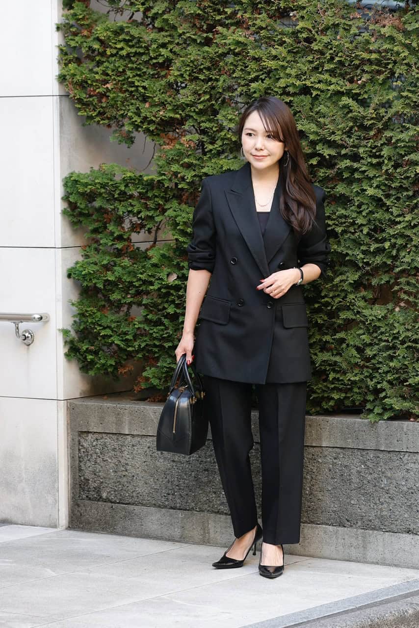 オケージョンも自分らしく!3人の兄弟の卒入学を経て経験値を積み、式典にも自分らしいファッションで参列できるようになりました。特にセレモニー用とは考えず、好みベースでコーデを考えています。普段にも使い回しできるもの、ときめくものをチョイスしているので心地よく過ごせます。この日は大好きなオールブラックコーデで纏めました。