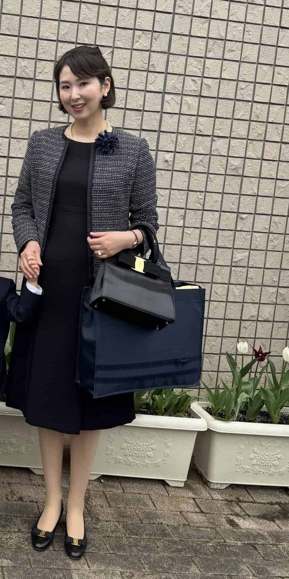 私立なので周りの雰囲気に合わせ、CELFORDのネイビーワンピースとジャケットで参加しました。CELFORDのセレモニー服は、形が綺麗な上、きちんと感とトレンド感のさじ加減が絶妙で安心して着用できます。