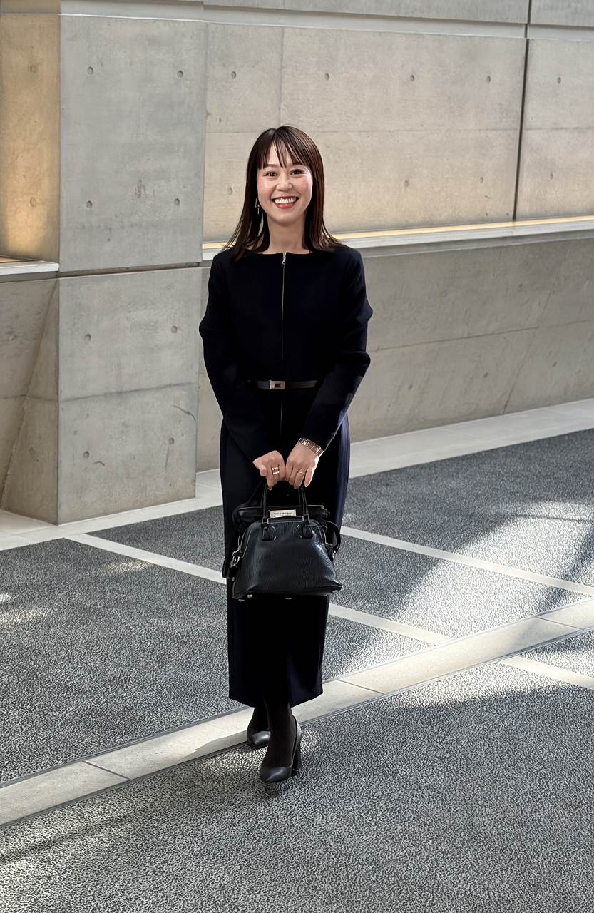 いかにもジャケットという装いではない服で行きたいと思い、デザイン性があり、スカート丈がしっかり長いこちらを選びました。背が高いのでなかなか理想の丈感に出会えないのですが、今回はバランスよく着られる一着に出合えて満足しています。きちんと感もありつつ、自分らしさも大切にしました。