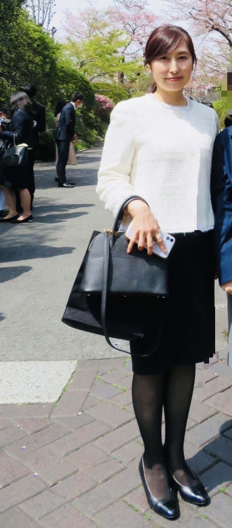 入学式なので華やかになるように白のツイードジャケットにしました。私立の女子校という落ち着いた雰囲気の場でも浮かないよう、他は黒で統一し、上品で引き締まった印象になるようにコーディネートしています。ジュエリーは8ミリ玉のパールネックレスとピアスを着用し、清潔感と控えめな華やかさのバランスを意識しました。