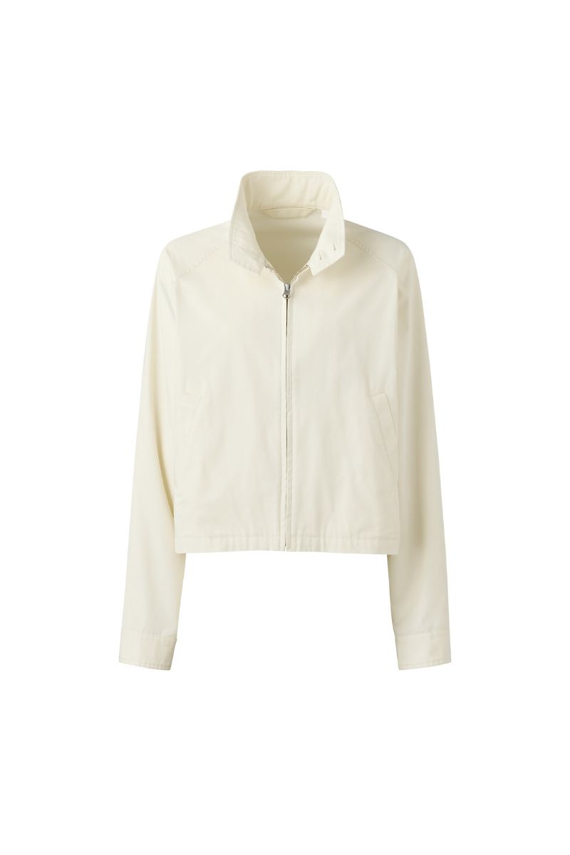 春の装いを一気に明るくしてくれる、白系アウター。なかでも、ロングワンピースにサッと羽織っても、パンツに合わせてもバランスよく決まるショート丈ブルゾンは使いやすくおすすめです。子どもといると汚れが気になる白ですが、洗濯機で洗えるのでトライしやすいはず。