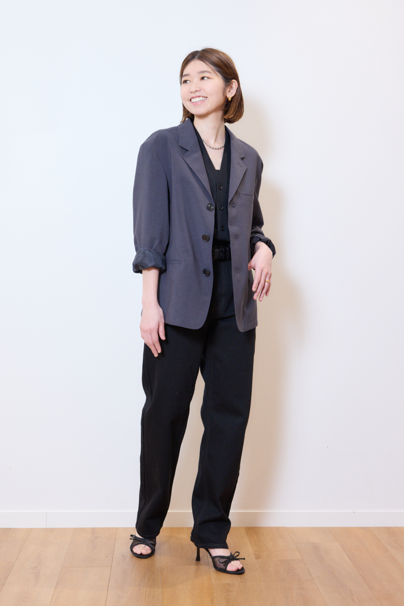 テーラードジャケット¥7,990 ウォッシャブルボタンダウンニットベスト¥2,990 ハイライズレギュラージーンズ ¥4,990 (すべてユニクロ ユー/ユニクロ)その他ライター私物