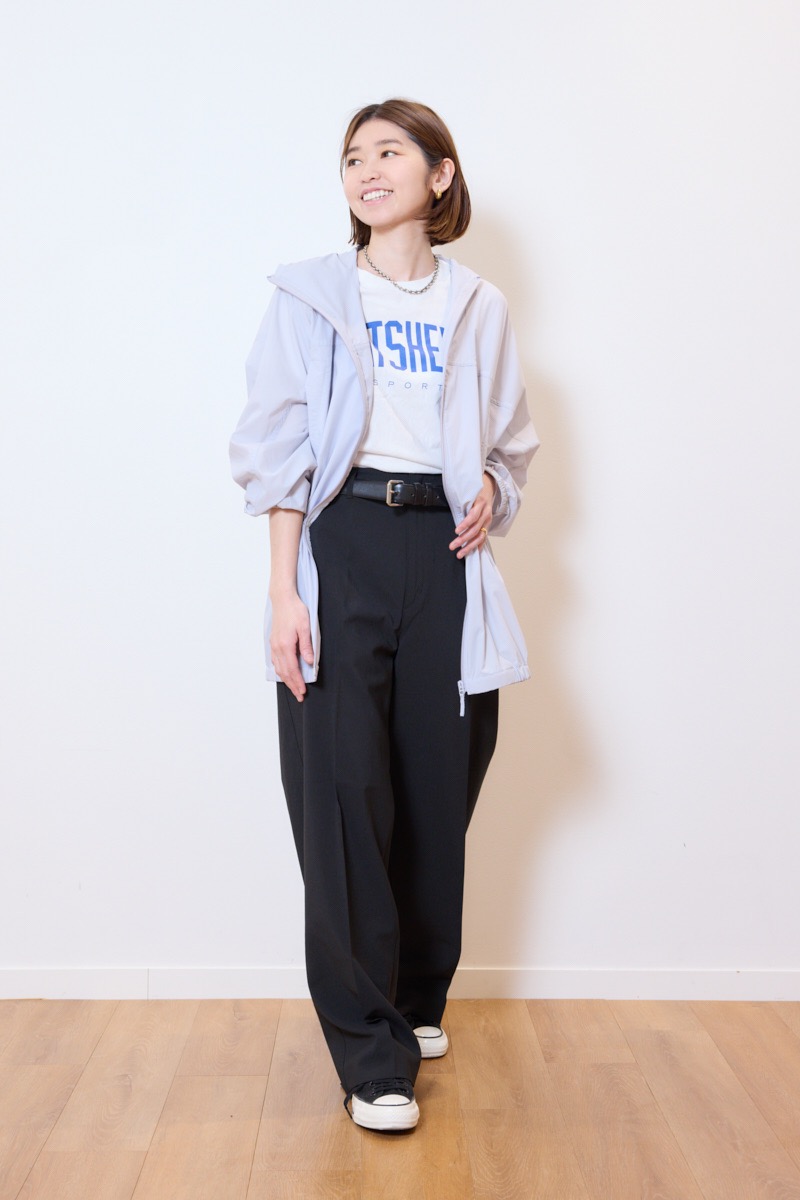 UVカットシアーオーバーサイズパーカ¥6,990 ハイライズストレートパンツ¥4,990(すべてユニクロ ユー/ユニクロ)その他ライター私物
