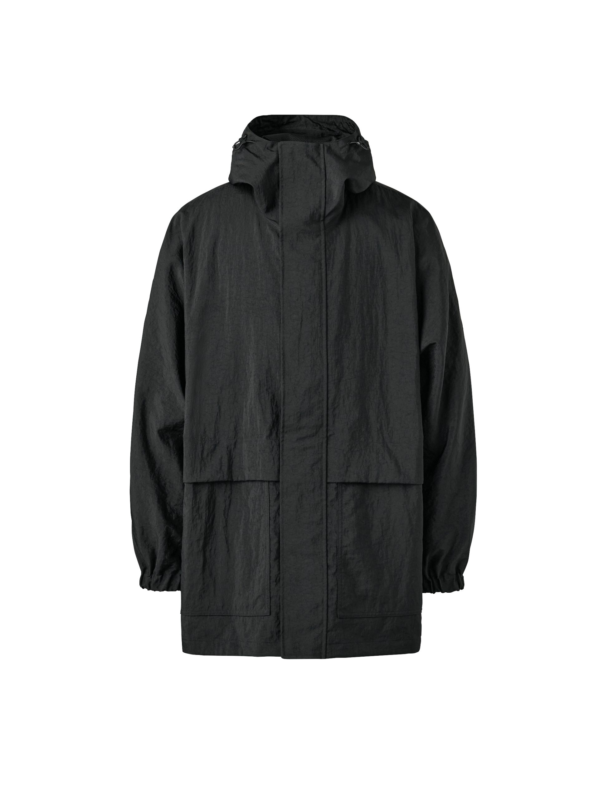 メンズアイテムのユーティリティパーカは、バッグいらずの大きめポケットや撥水仕様に加え、背中に蒸れを防ぐためのベンチレーションが付いた機能派。シンプルなコーデに合わせるだけで、オーバーシルエットがちょうどよいアクセントになって上級者な印象に。パパと兼用するのもアリです。