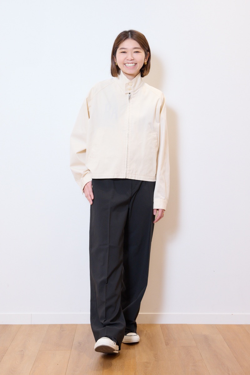 【パンツコーデ】コットンブレンドショートブルゾン¥5,990 ハイライズストレートパンツ¥4,990(すべてユニクロ ユー/ユニクロ)その他ライター私物