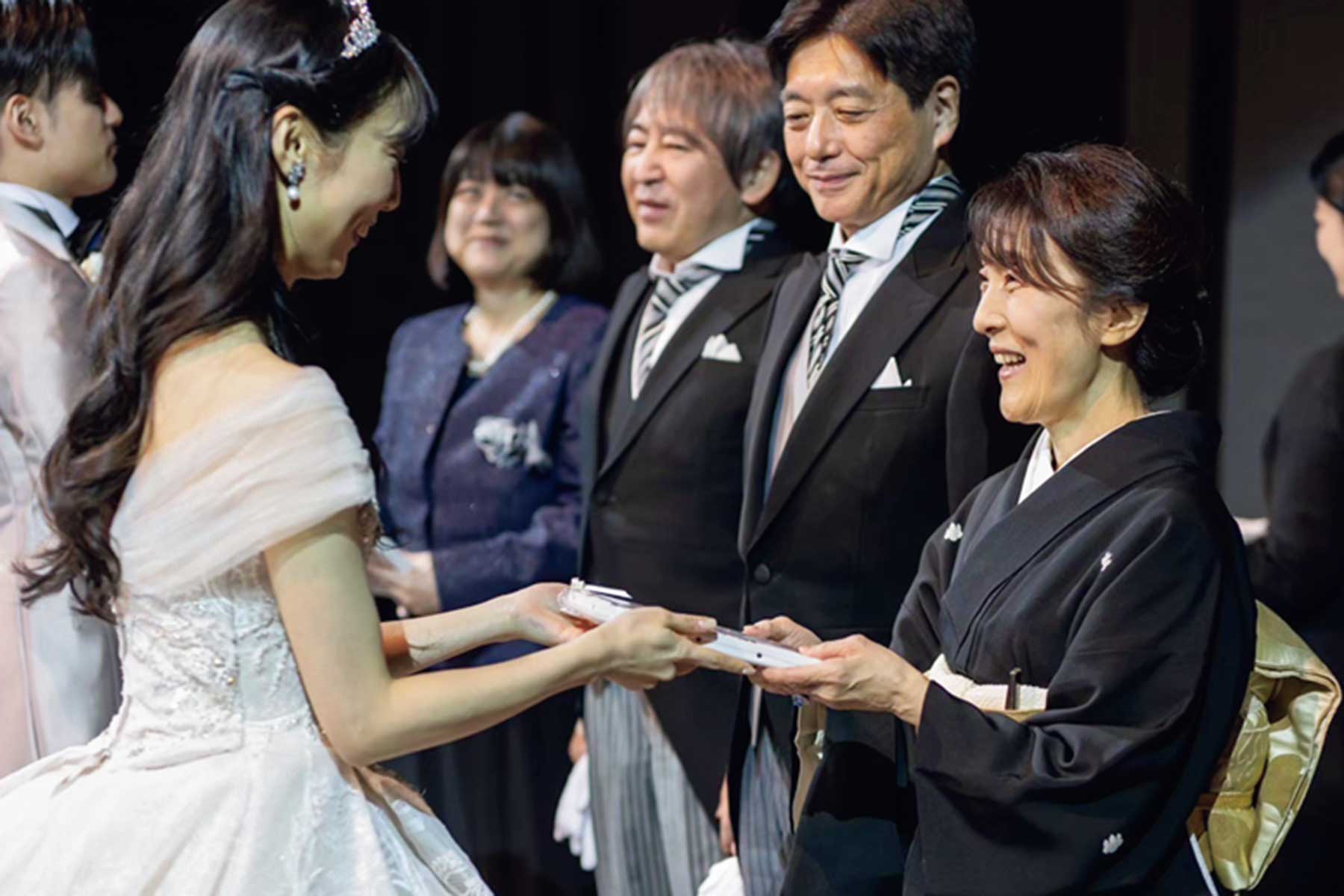 「泣いて場の空気をしんみりさせたくない」と、手紙の内容は家族にだけ共有するものへ。「新婦だけ読むと、“お嫁に行く感”が出る」という理由から、内容を調整したり、新郎新婦からそれぞれの両親に記念品を渡すスタイルも広がっています。