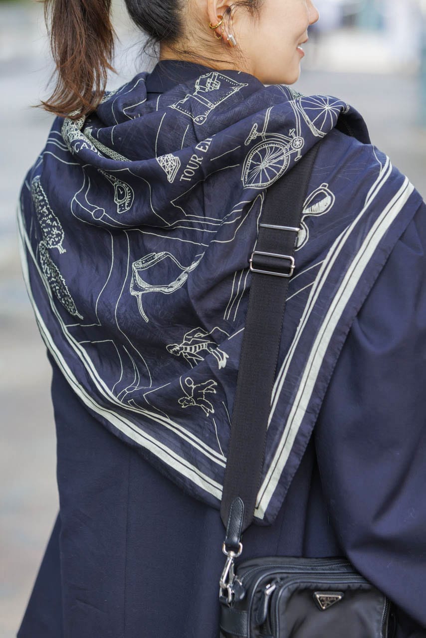 【エルメスのスカーフ】 コーデ3選。巻くより「着る」がカジュアル派の新定番