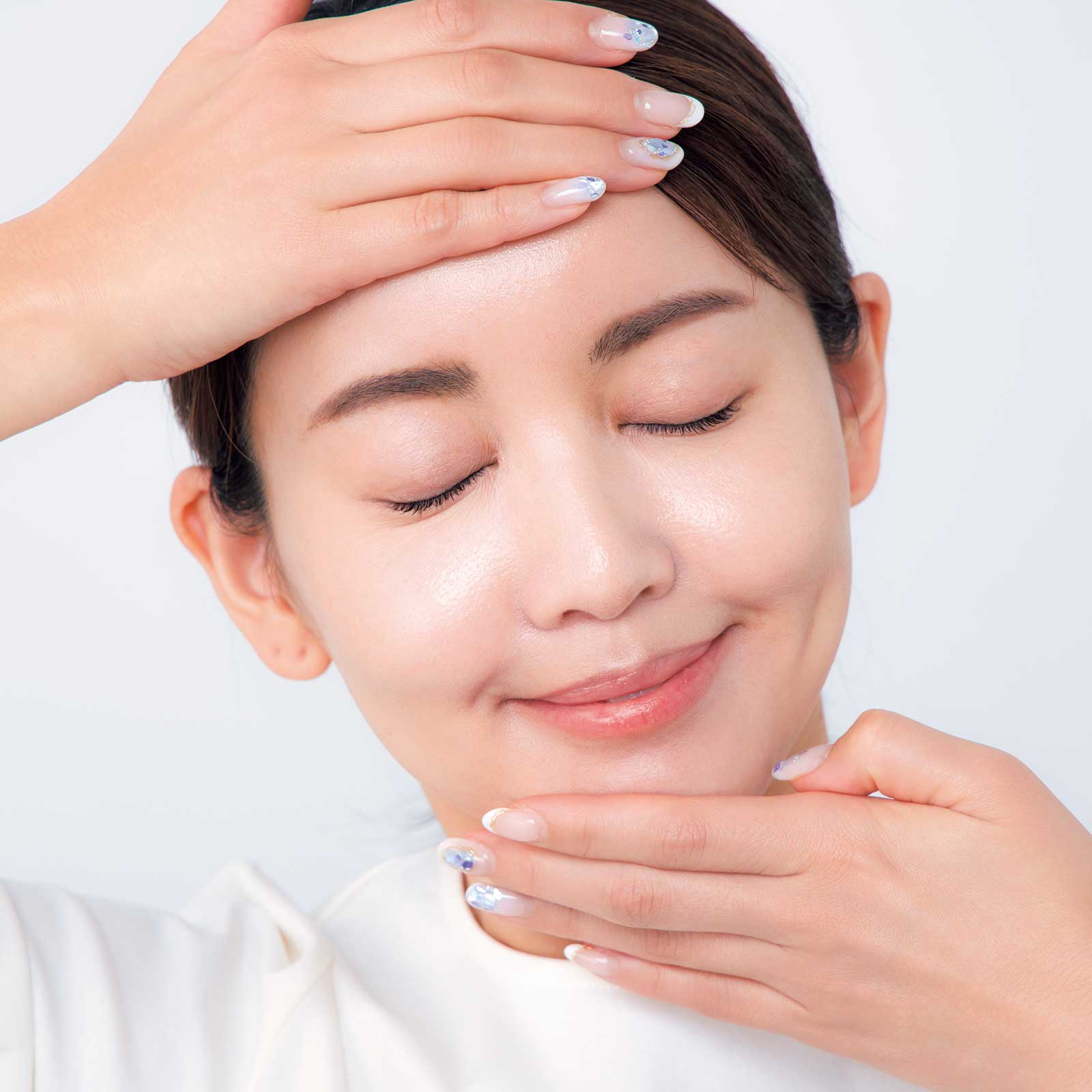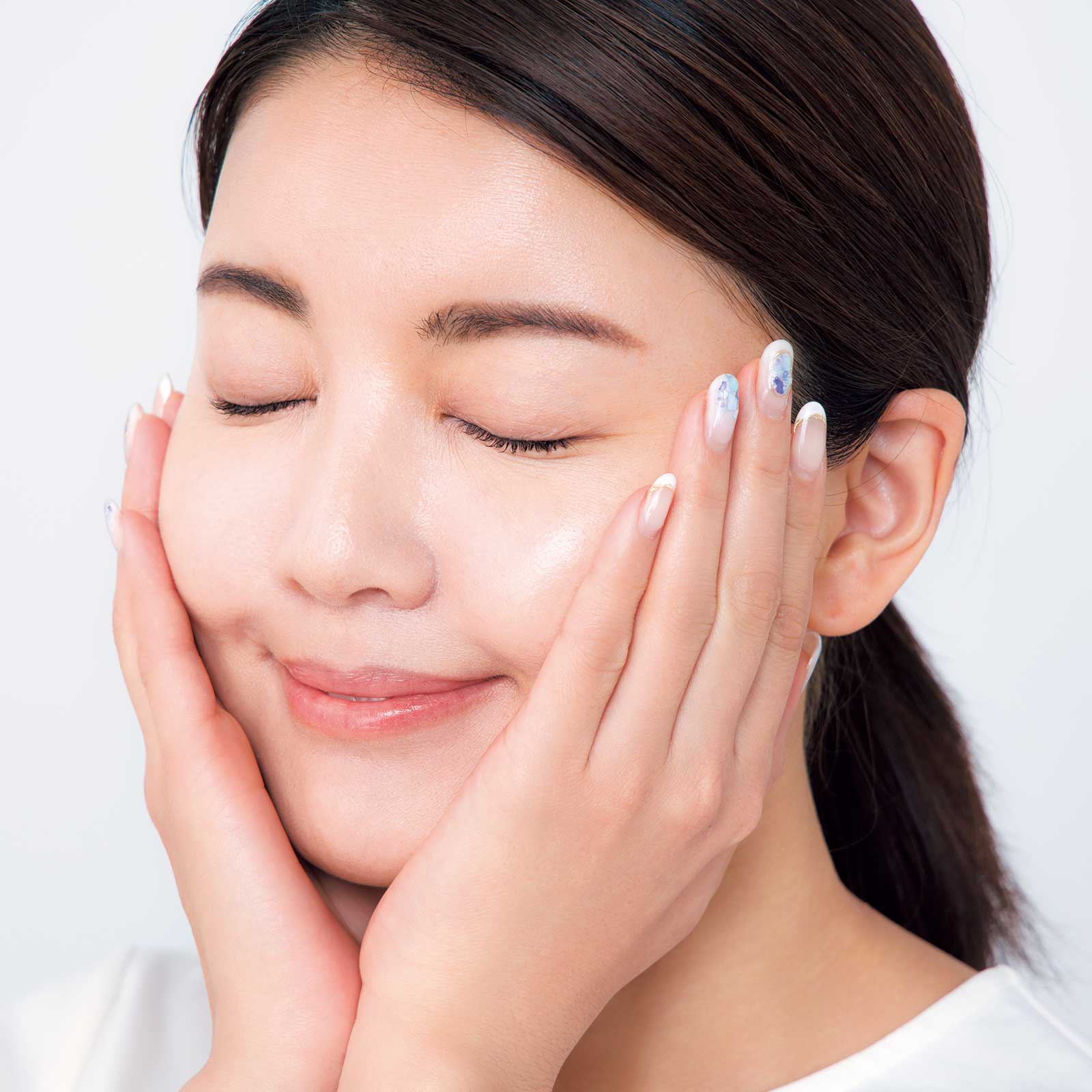 化粧水は、手に肌がモチッと吸い付くくらいまで浸透させて、肌を柔らかく整えておきましょう。肌へ入っていかずにはじいてしまう! という人は、時間を置いてなじませてみて。