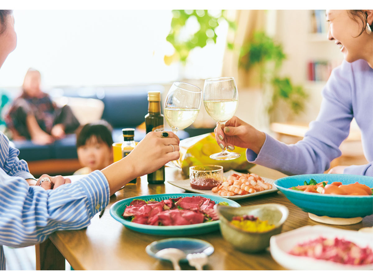 前日に「明日空いてる?」とママ友たちに声をかけて、早帰りの日は我が家に集合するのがお決まり。ワンオペのママ友が多いので、夕飯→お風呂まで済ませてみんなで協力するスタイルが定着。実は私、お酒を飲みながら料理をするのが一番のリフレッシュ方法で(笑)。ワインを片手にキッチンに立って、友人の話を聞きながらおつまみを作るのが楽しみなんです。みんなと過ごせば、何気ない早帰りの日もエンタメに。みんな、いつもありがとう♡