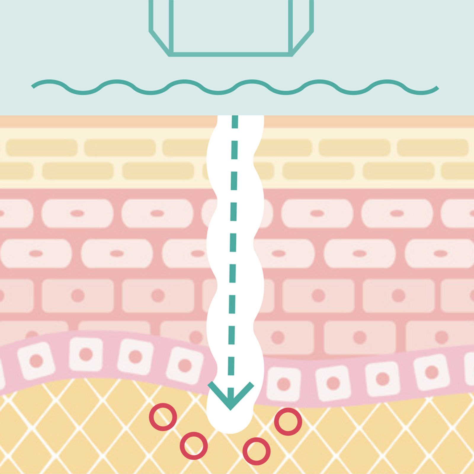 エレクトロポレーションは高速電気パルスを用いて一時的に細胞膜に穴をあけ、その穴の開閉が断続的に繰り返されることで薬剤の通り道を失わずに真皮層まで浸透させる技術。
