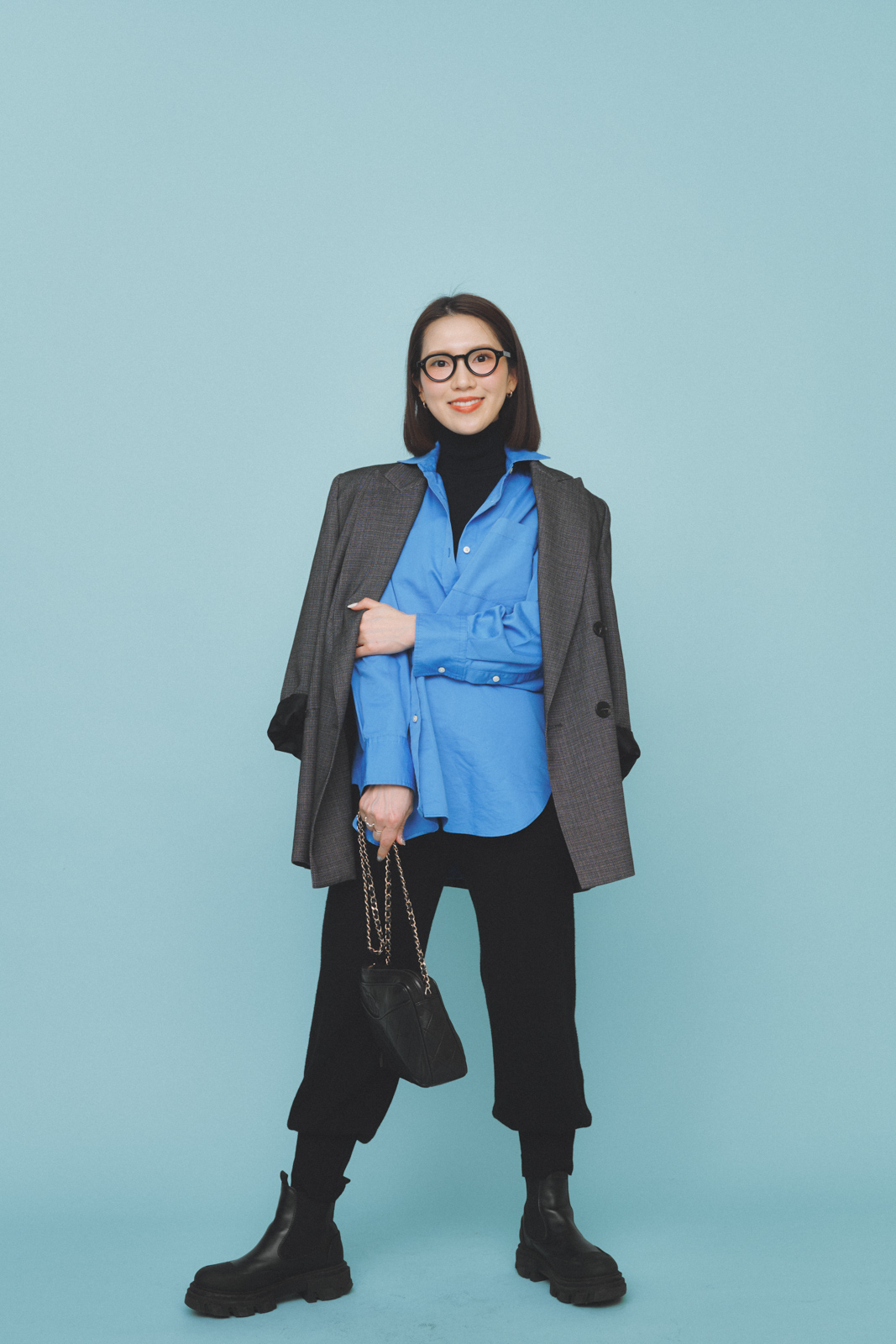 「今年の年始は、栃木県・那須塩原へリフレッシュ旅に。カフェ巡りや美術館、アウトレットまで1日で色々な場所へ行くので、ラフすぎずきちんと感のあるコーデを意識しました。ジャケット×シャツでキレイめにまとめつつ、韓国ブランド・スモアのニットパンツで動きやすさをプラス。パンツはシワになりにくく着心地も快適なので、長時間の移動でもストレスフリーです。足元はボリュームを出したくてガニーのブーツを合わせました」