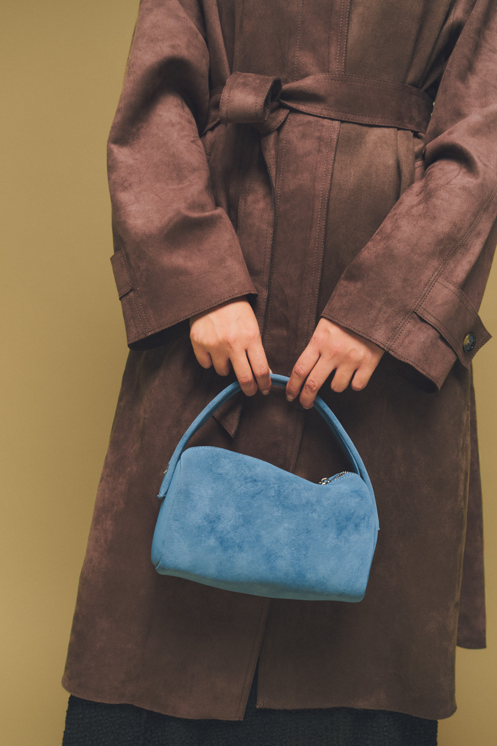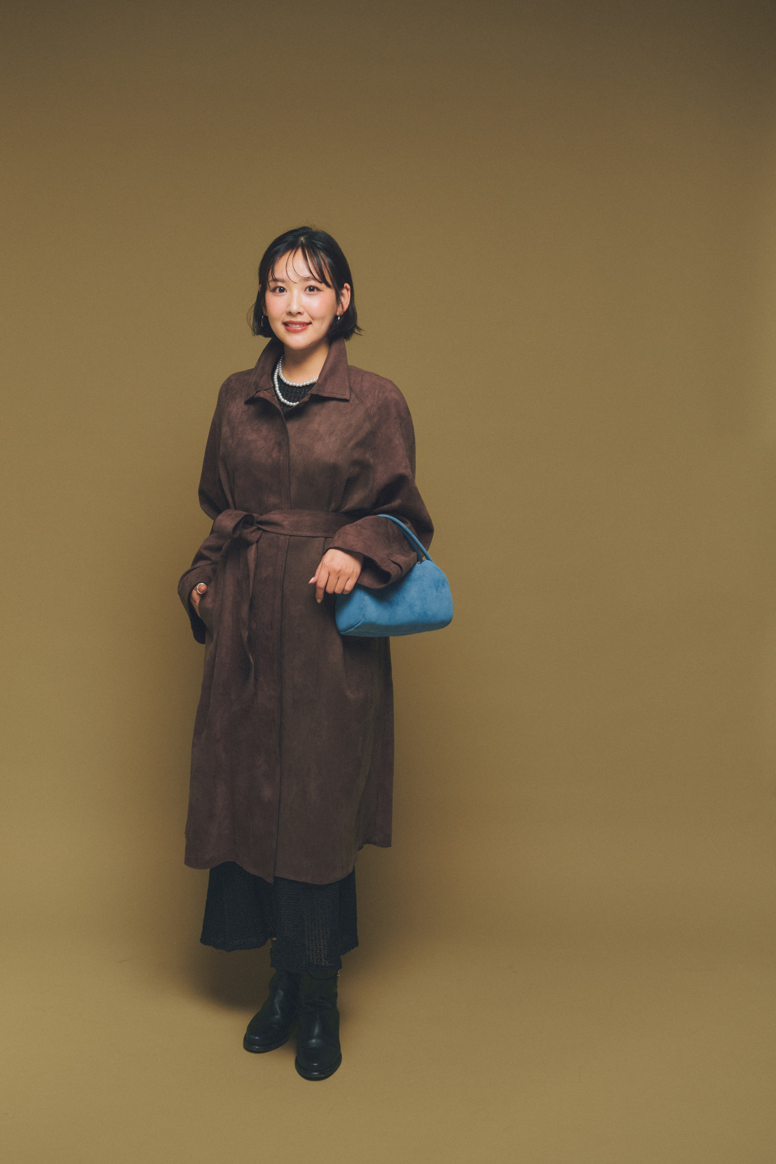 「スウェードの質感に惹かれて愛用しているブルー&パランのバッグ。秋冬の印象が強い素材ですが、このカラーなら春の着こなしにもすっと馴染んで、重たく見えません。コーデのアクセントとしても効いてくれるから愛用しています」
