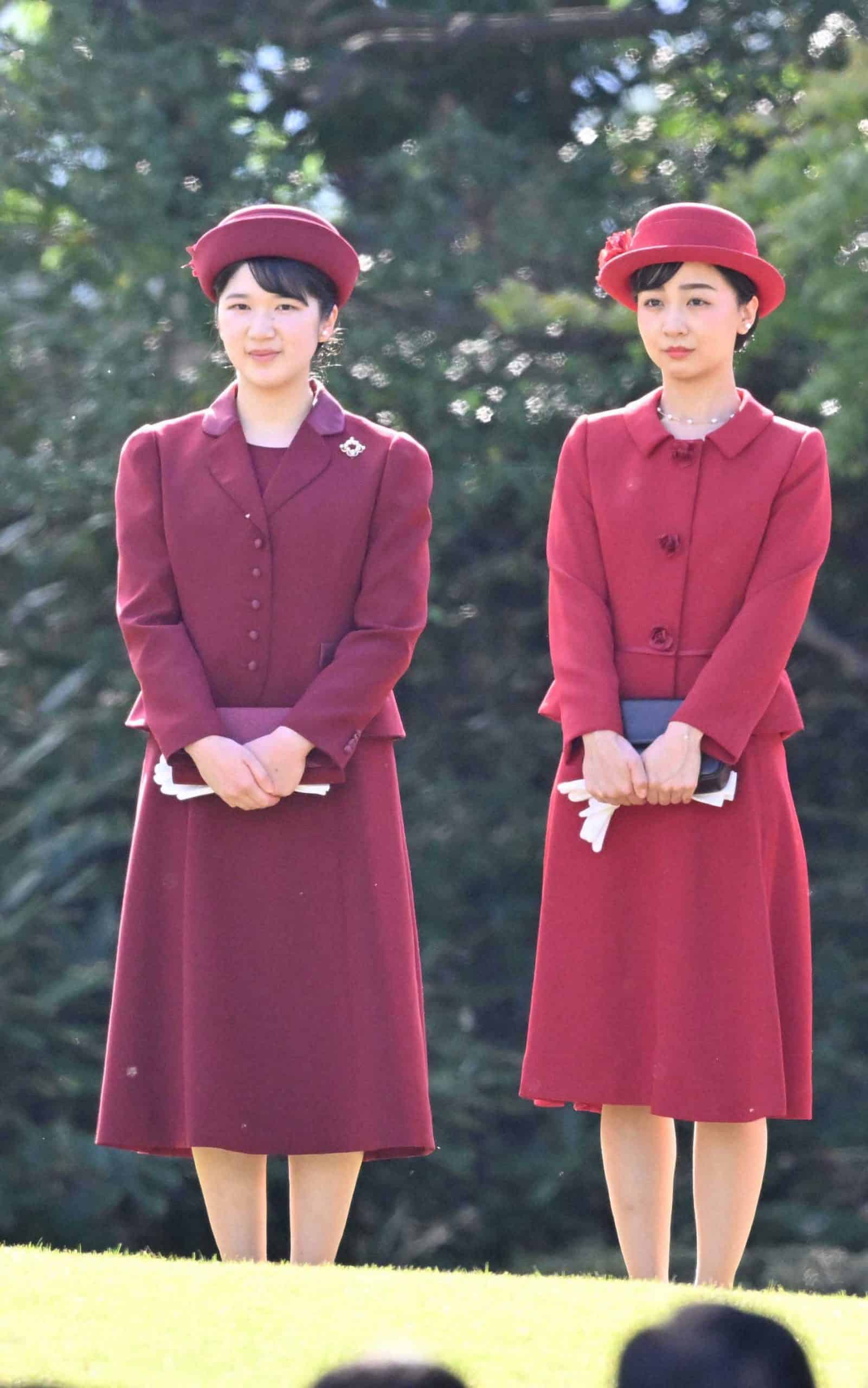 濃淡の“赤”の効果で、フレッシュな華やぎを添えた愛子さまと佳子さま