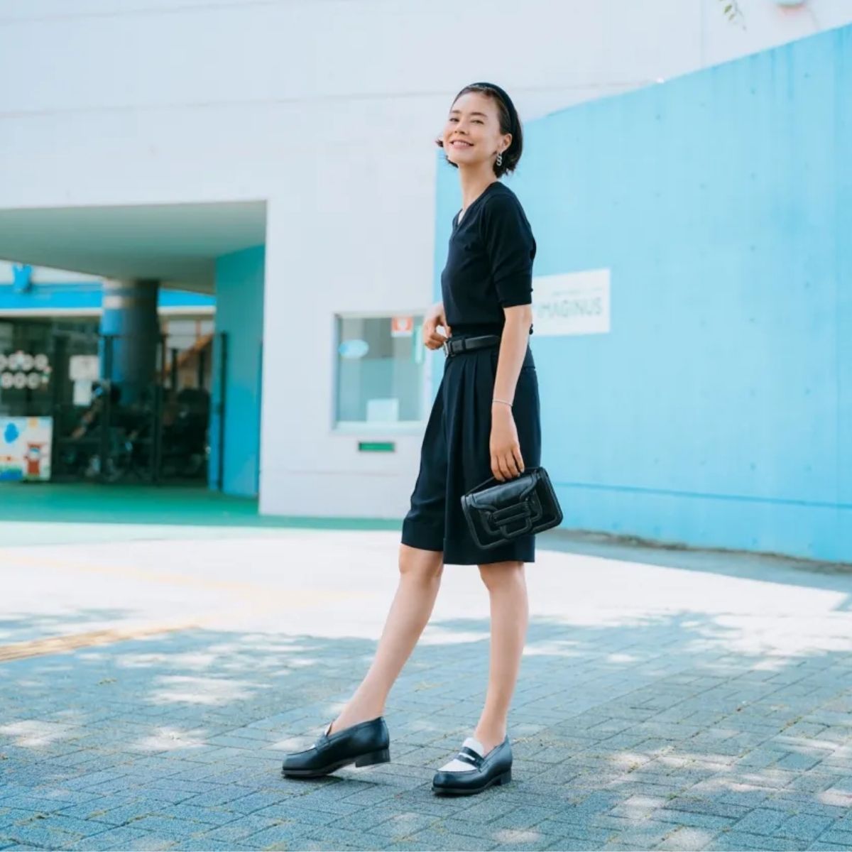 ショートパンツも ローファーのおかげで上品に