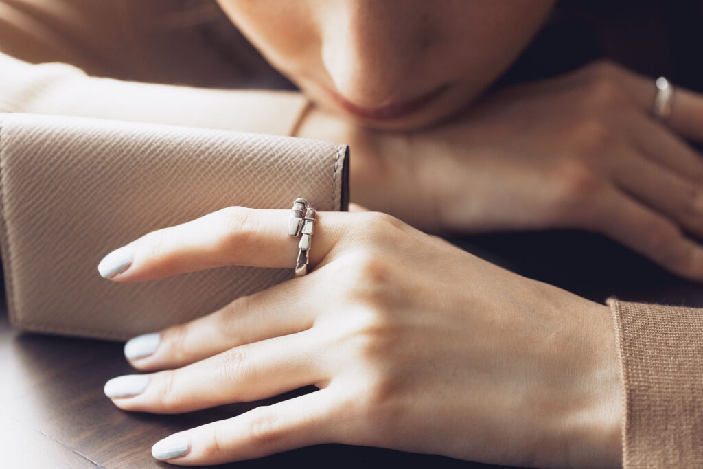 昨年11月、ずっと目標にしていた外資系ITへの転職が実現。念願の環境で新しいスタートを切る自分に退職金で手に入れたのは、憧れジュエラーのリング。肌身離さずお守りのように身に着けられて、自分の視野に入りやすいからモチベーションにもなる。“自分が頑張った証し”として胸を張れて、はじめましての商談でも、きっと大丈夫と自信をくれる存在です。名刺入れは、共にキャリアを築いていく戦友的パートナー。出会いや縁を繋いでくれて、使い続けることで思い入れも深まる、あえて頻繁には変えたくないアイテム。長く愛用できる上質でタイムレスな名品を選んでいます。(田村有希さん/外資系IT企業勤務・28歳)
